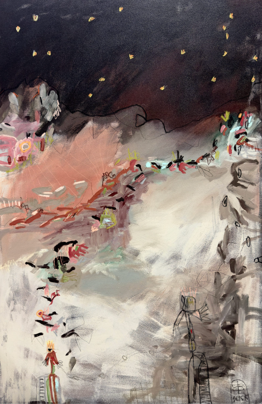 Mixed media (acrylic oil pastel oil crayon and oil stick) on canvas