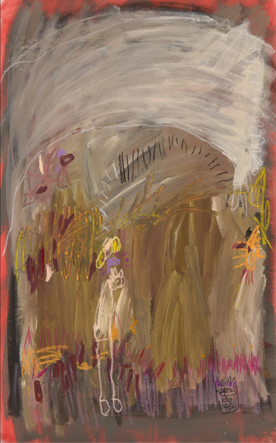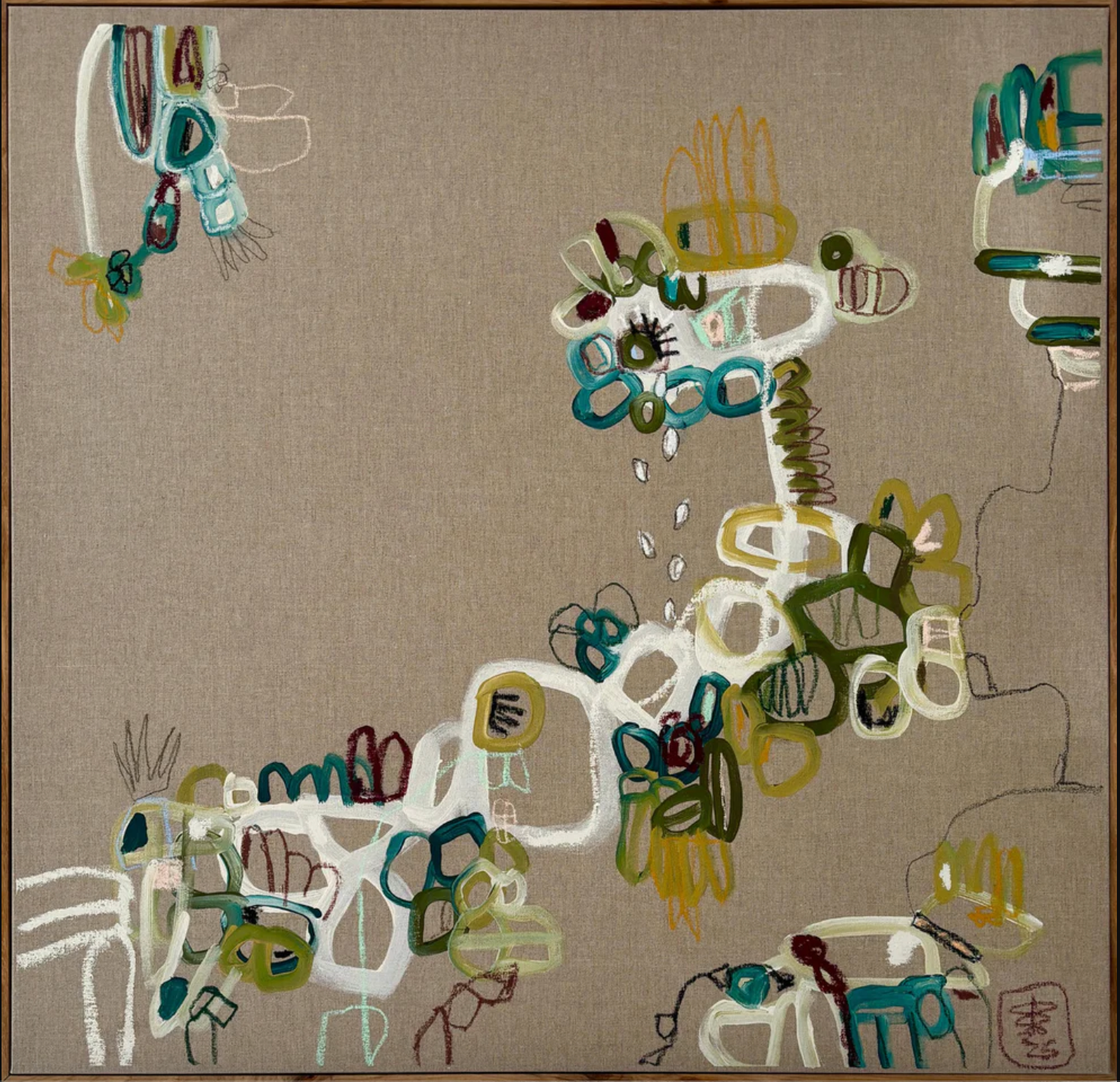 These paintings are created intuitively, often inspired by life in the bush, colour experiments, and moments that don’t ask for overthinking. At first glance, they feel playful or childlike. Stay with them a little longer and you’ll notice the layers, movement, and quiet complexity underneath.